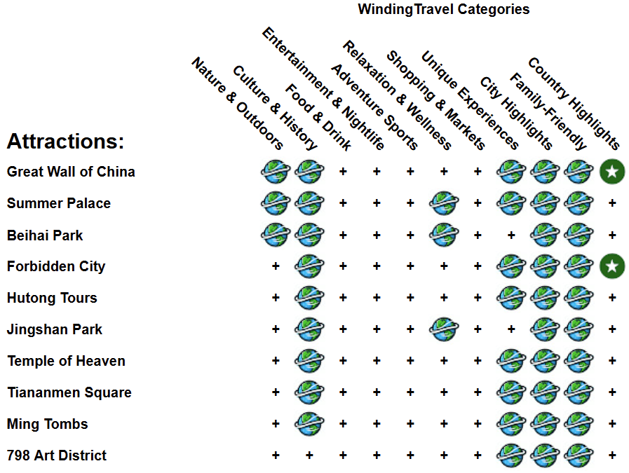 | Great Wall of China | Visit the Great Wall, a UNESCO World Heritage Site, stretching thousands of miles across northern China, offering breath-taking views and rich history. |
