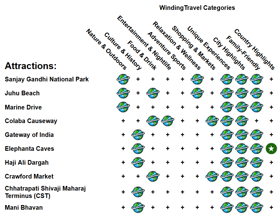 | Elephanta Caves | Explore the UNESCO-listed Elephanta Caves, an ancient rock-cut temple complex with impressive sculptures of Hindu deities. |
