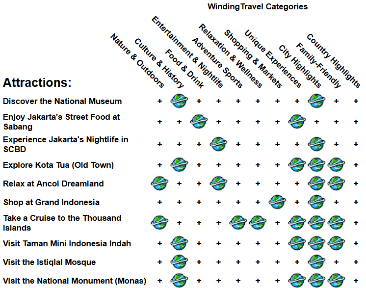 | Discover the National Museum | Delve into Indonesia’s rich history at the National Museum, housing extensive collections of artifacts, relics, and exhibitions that trace the nation’s cultural heritage. |