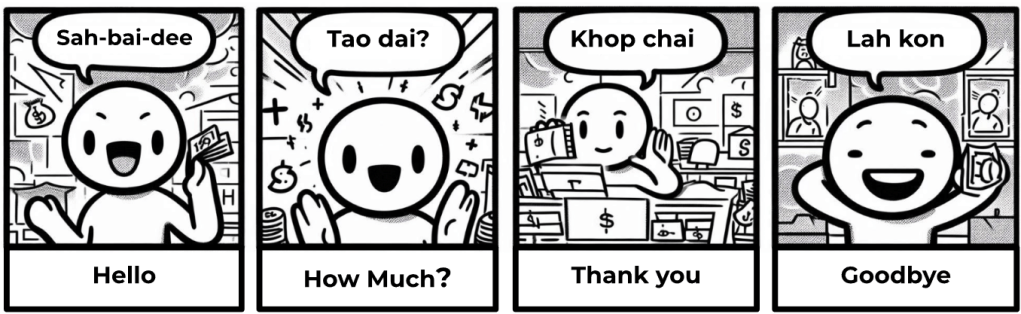The main language spoken is Lao. Below are some key phrases (phonetic translation) to get you started. A big smile and a few words can get you a long way!