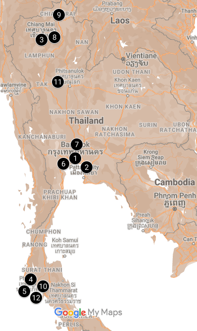 See map of Thailand to review top attractions. For the best experience save locally to open with google maps/share with your friends to help plan your next adventure! Some locations are hidden behind others, click map to reveal full details: