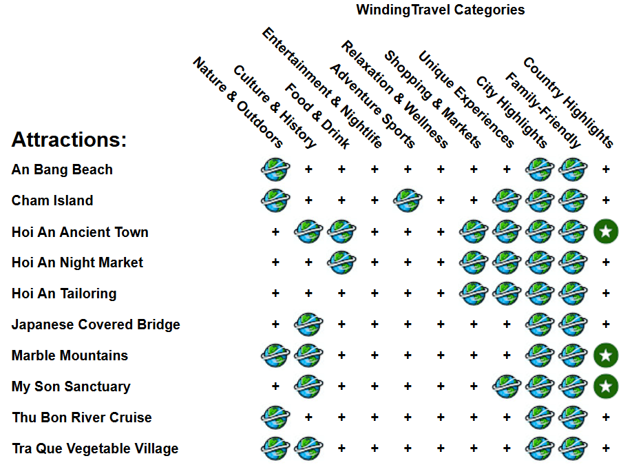 | Marble Mountains | Discover these limestone hills with their stunning caves, pagodas, and panoramic views, offering a mix of nature and spiritual exploration. |