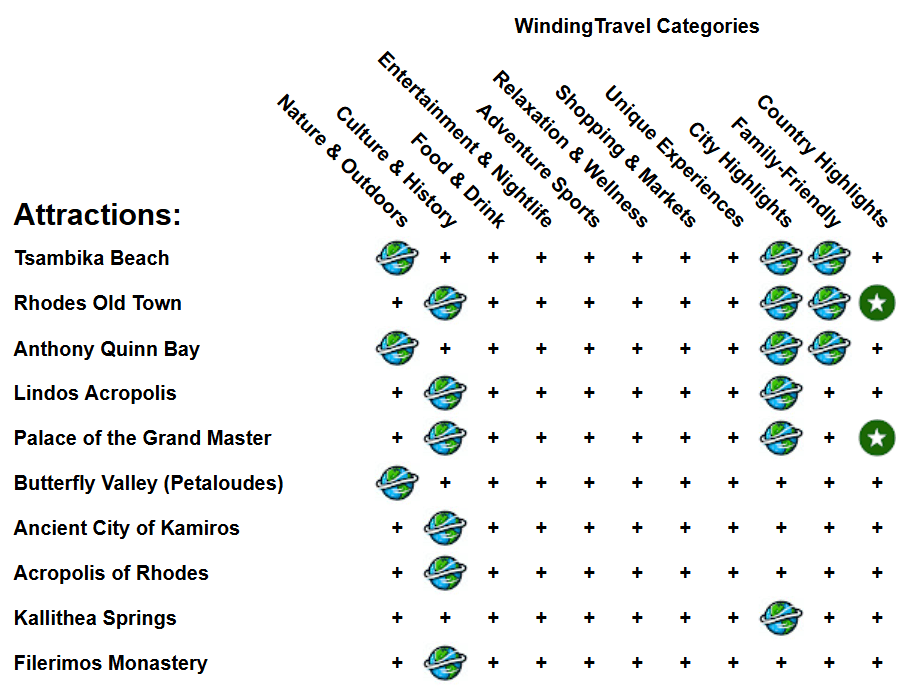 | Rhodes Old Town | Wander through the cobbled streets of Rhodes Old Town, a UNESCO World Heritage site filled with medieval architecture, vibrant shops, and charming cafes. |