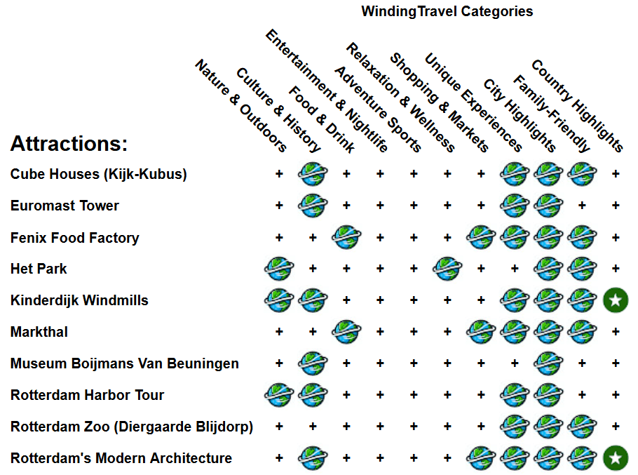 | Rotterdam Harbor Tour | Embark on a harbour tour of Europe’s largest port, learning about Rotterdam’s maritime history and witnessing the bustling activity of ships and cargo. |